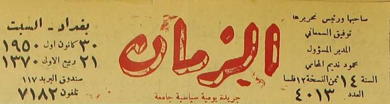 الزمان (جريدة : بغداد، العراق : 1937)