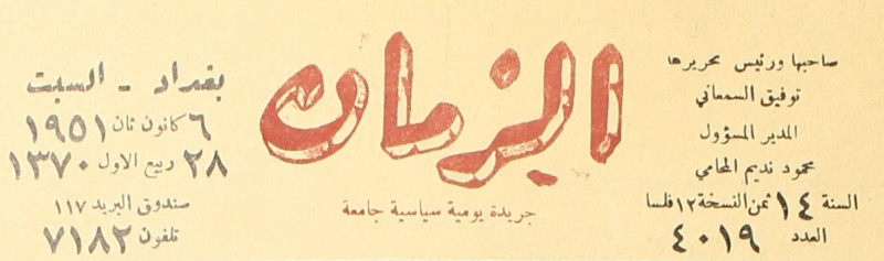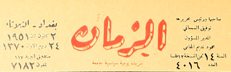 الزمان (جريدة : بغداد، العراق : 1937)