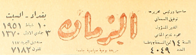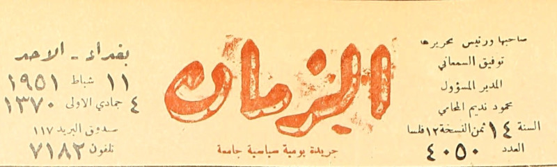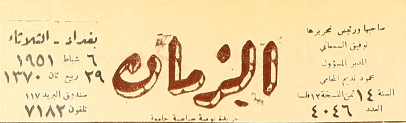 الزمان (جريدة : بغداد، العراق : 1937)