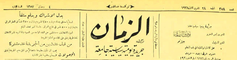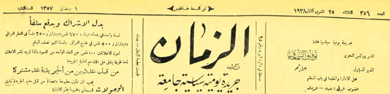 الزمان (جريدة : بغداد، العراق : 1937)