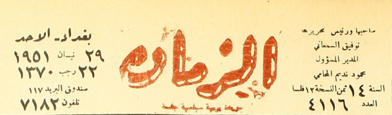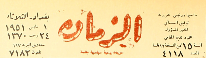 صاحبها ومدير تحريرها : توفيق السمعاني.