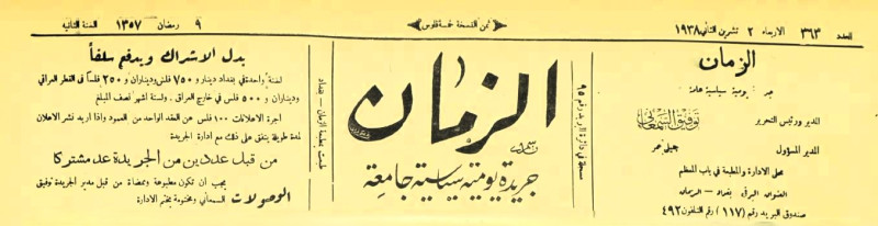 الزمان (جريدة : بغداد، العراق : 1937)
