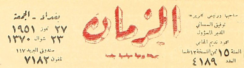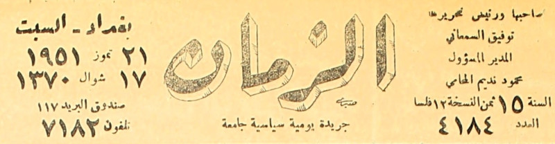 الزمان (جريدة : بغداد، العراق : 1937)