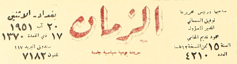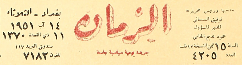 صاحبها ومدير تحريرها : توفيق السمعاني.