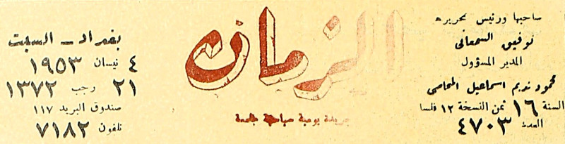 صاحبها ومدير تحريرها : توفيق السمعاني.