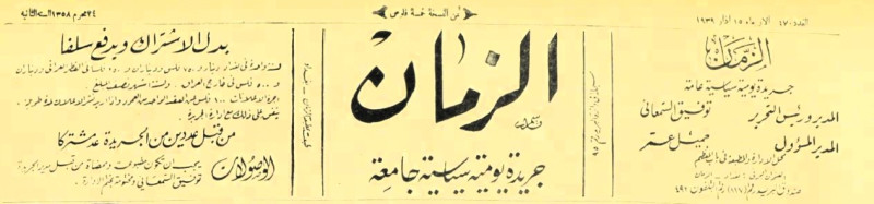 صاحبها ومدير تحريرها : توفيق السمعاني.