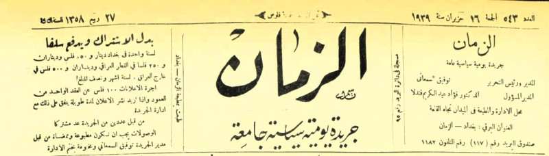 صاحبها ومدير تحريرها : توفيق السمعاني.