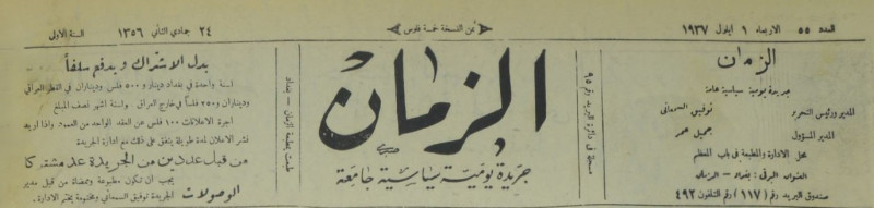 صاحبها ومدير تحريرها : توفيق السمعاني.