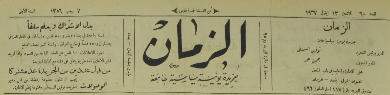 الزمان (جريدة : بغداد، العراق : 1937)