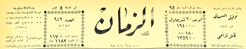 الزمان (جريدة : بغداد، العراق : 1937)