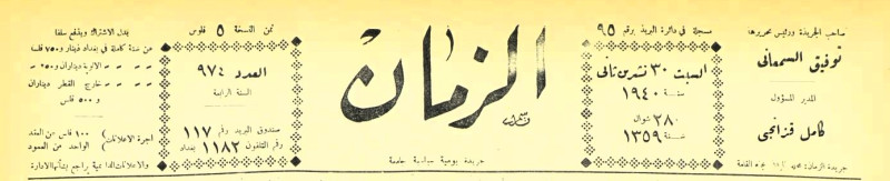الزمان (جريدة : بغداد، العراق : 1937)
