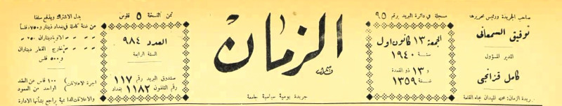 صاحبها ومدير تحريرها : توفيق السمعاني.
