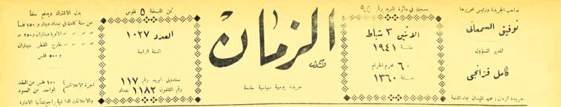 الزمان (جريدة : بغداد، العراق : 1937)
