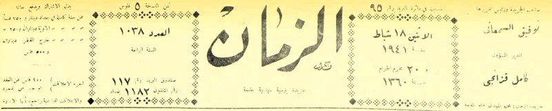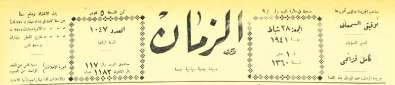 صاحبها ومدير تحريرها : توفيق السمعاني.