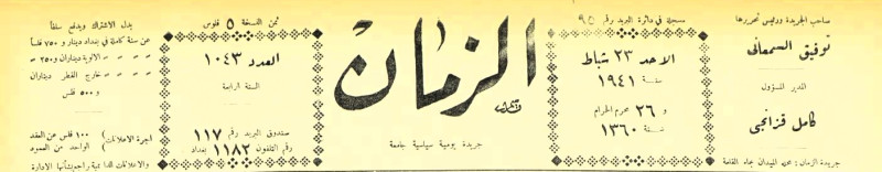 العدد 7628، السنة 26 (12 كانون الثاني 1963)
