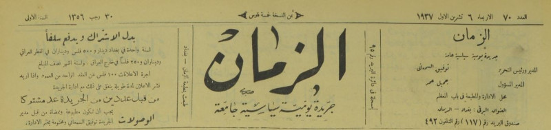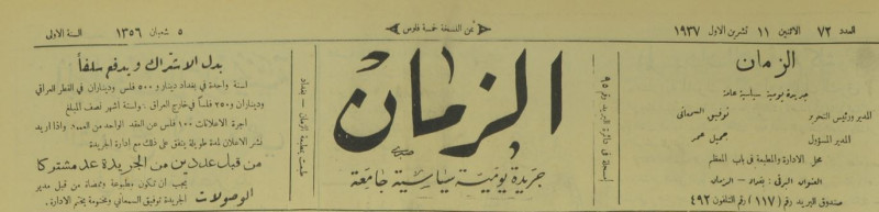 صاحبها ومدير تحريرها : توفيق السمعاني.