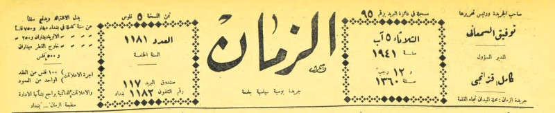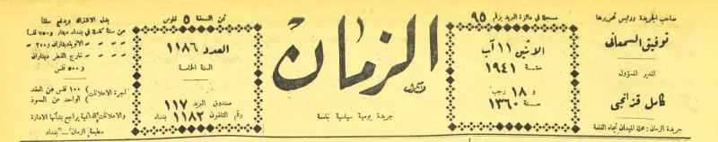 صاحبها ومدير تحريرها : توفيق السمعاني.