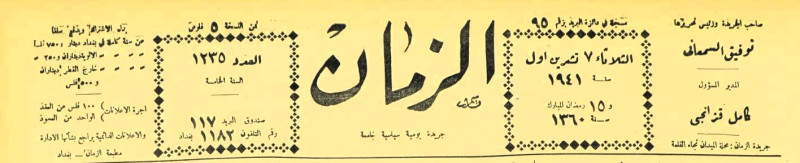 صاحبها ومدير تحريرها : توفيق السمعاني.