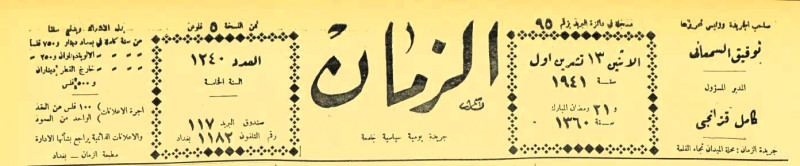 الزمان (جريدة : بغداد، العراق : 1937)