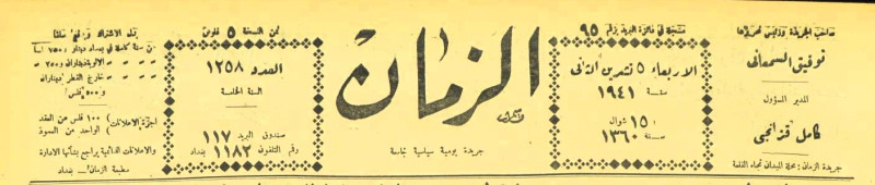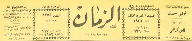 صاحبها ومدير تحريرها : توفيق السمعاني.