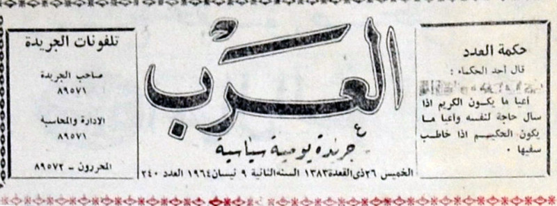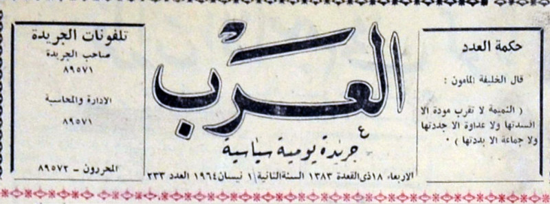 العرب (جريدة : بغداد، العراق : 1963)