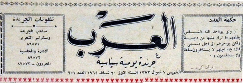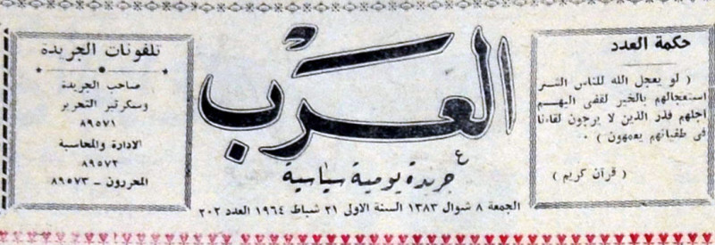 صاحب الامتياز ورئيس التحرير المسؤول : نعمان العاني المحامي.