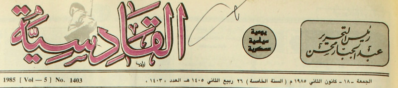 AL-QADISSYA : جريدة يومية سياسية عسكرية /