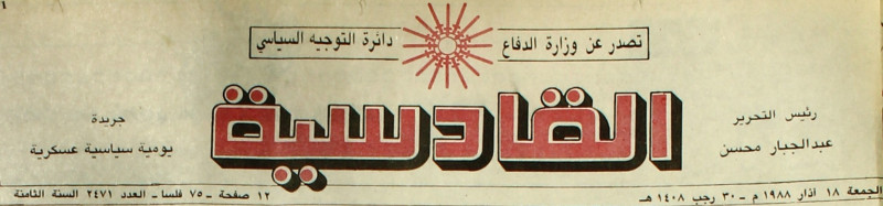 AL-QADISSYA : جريدة يومية سياسية عسكرية /