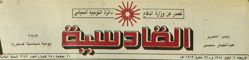 AL-QADISSYA : جريدة يومية سياسية عسكرية /