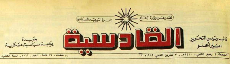 AL-QADISSYA : جريدة يومية سياسية عسكرية /