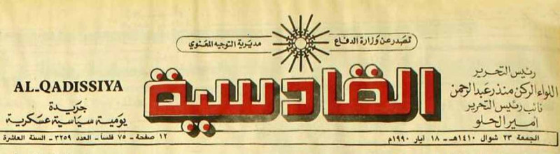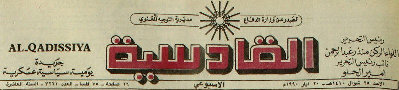 AL-QADISSYA : جريدة يومية سياسية عسكرية /