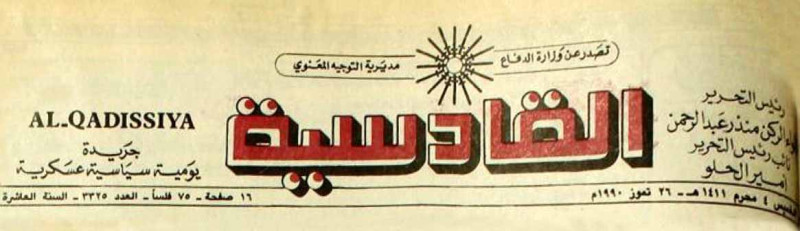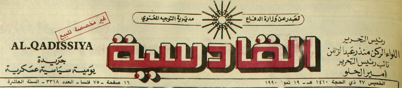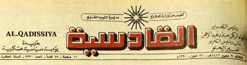 AL-QADISSYA : جريدة يومية سياسية عسكرية /