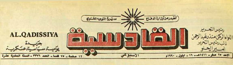 AL-QADISSYA : جريدة يومية سياسية عسكرية /