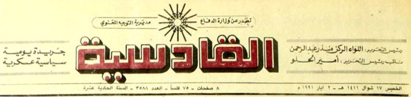 AL-QADISSYA : جريدة يومية سياسية عسكرية /
