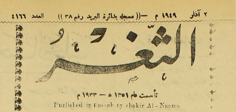 جريدة يومية سياسية عامة = AL-Thaghr : A Daily Newspaper