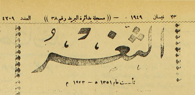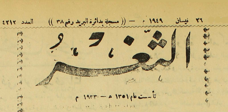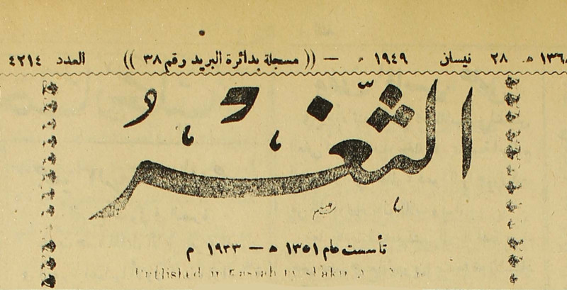 جريدة يومية سياسية عامة = AL-Thaghr : A Daily Newspaper