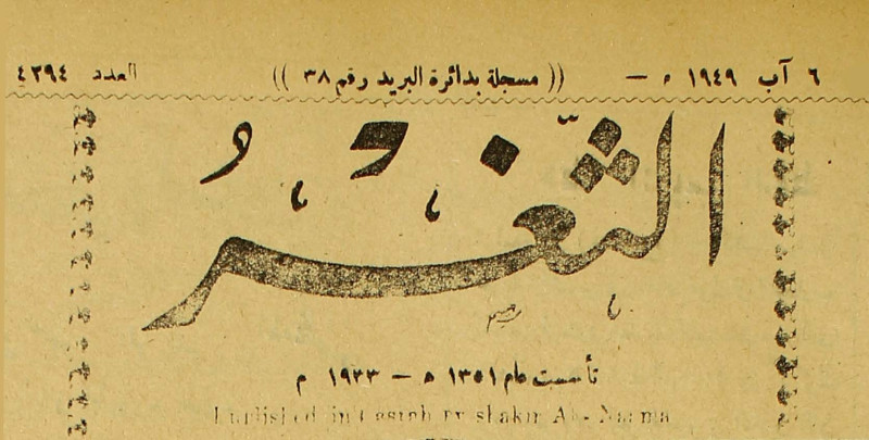 جريدة يومية سياسية عامة = AL-Thaghr : A Daily Newspaper