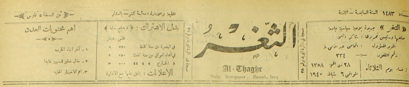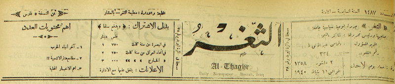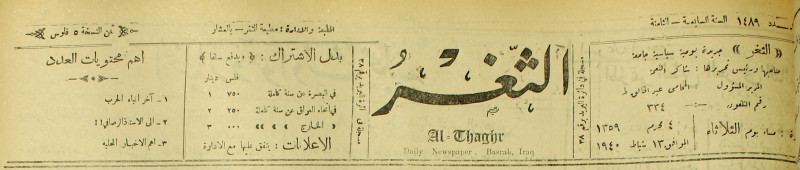 جريدة يومية سياسية عامة = AL-Thaghr : A Daily Newspaper