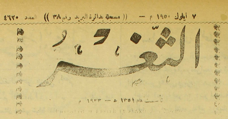 جريدة يومية سياسية عامة = AL-Thaghr : A Daily Newspaper