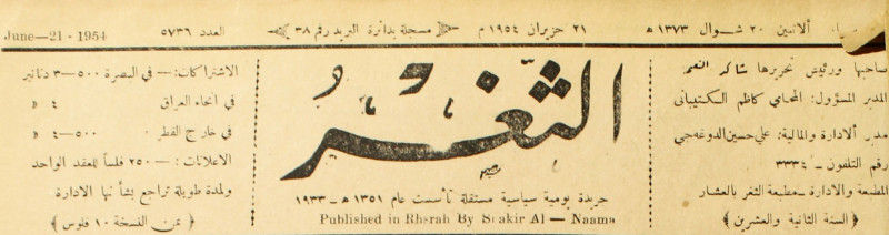 جريدة يومية سياسية عامة = AL-Thaghr : A Daily Newspaper
