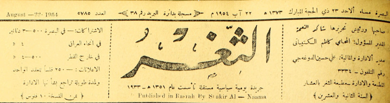 جريدة يومية سياسية عامة = AL-Thaghr : A Daily Newspaper