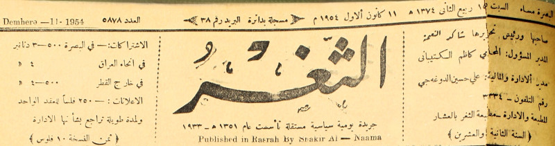 جريدة يومية سياسية عامة = AL-Thaghr : A Daily Newspaper