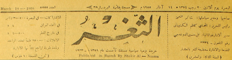 صاحبها ورئيس تحريرها : شاكر النعمة.