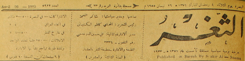 صاحبها ورئيس تحريرها : شاكر النعمة.