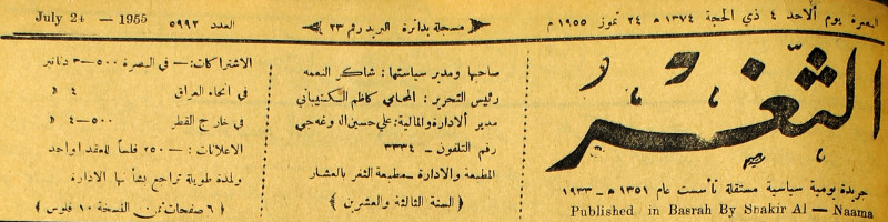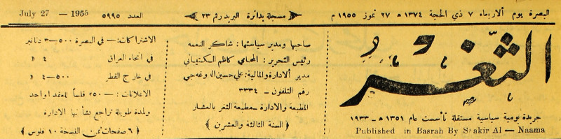 صاحبها ورئيس تحريرها : شاكر النعمة.