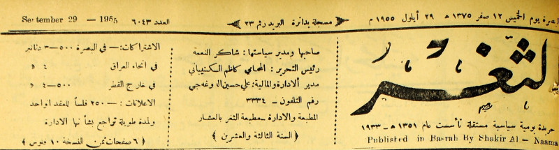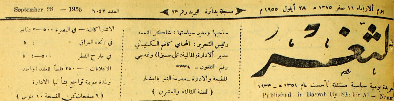 جريدة يومية سياسية عامة = AL-Thaghr : A Daily Newspaper
