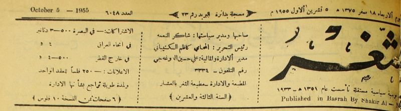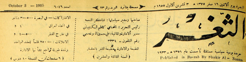 صاحبها ورئيس تحريرها : شاكر النعمة.