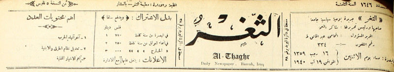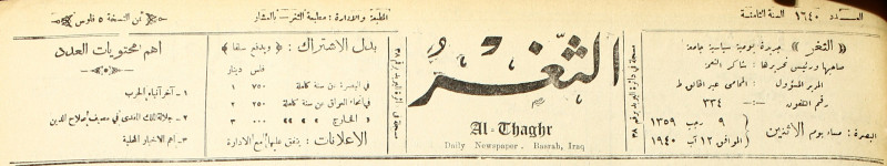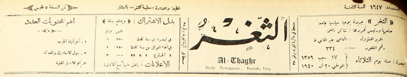 جريدة يومية سياسية عامة = AL-Thaghr : A Daily Newspaper