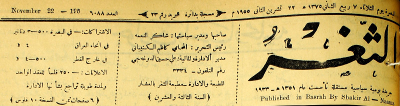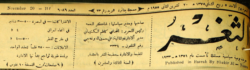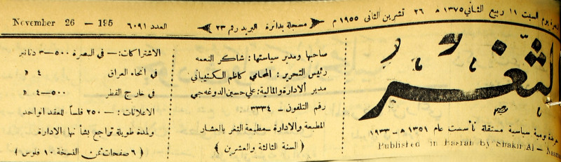 صاحبها ورئيس تحريرها : شاكر النعمة.