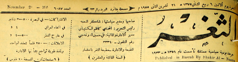 جريدة يومية سياسية عامة = AL-Thaghr : A Daily Newspaper